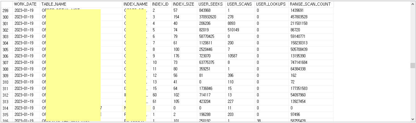 -- RANGE_SCAN_COUNT : INDEX에서 범위로 찾은 후 데이터에서 다시 조회됨.